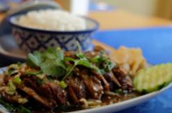 Chicken barbequed in authentic Thai spicy pineapple and sweet plum sauce.
