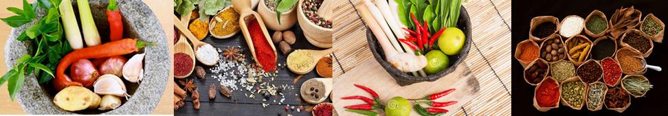 The Thais make much use of condiments in their food. Typical seasonings are, sauces and flavourings such as fish sauce (Nam Pla), Shrimp paste (Ka Pi), curry powder, soy sauce, coconut milk and cream, tamarind, limes, and many kinds of spices, including cardamon, coriander, anise, and other seeds, cloves, nutmeg, ginger and cinnamon. We would like to point out that none of our recipes contain Monosodium Glutamate other than found naturally occurring in tomatoes, cheese and other foods. We do not add any other chemical additives what so ever.